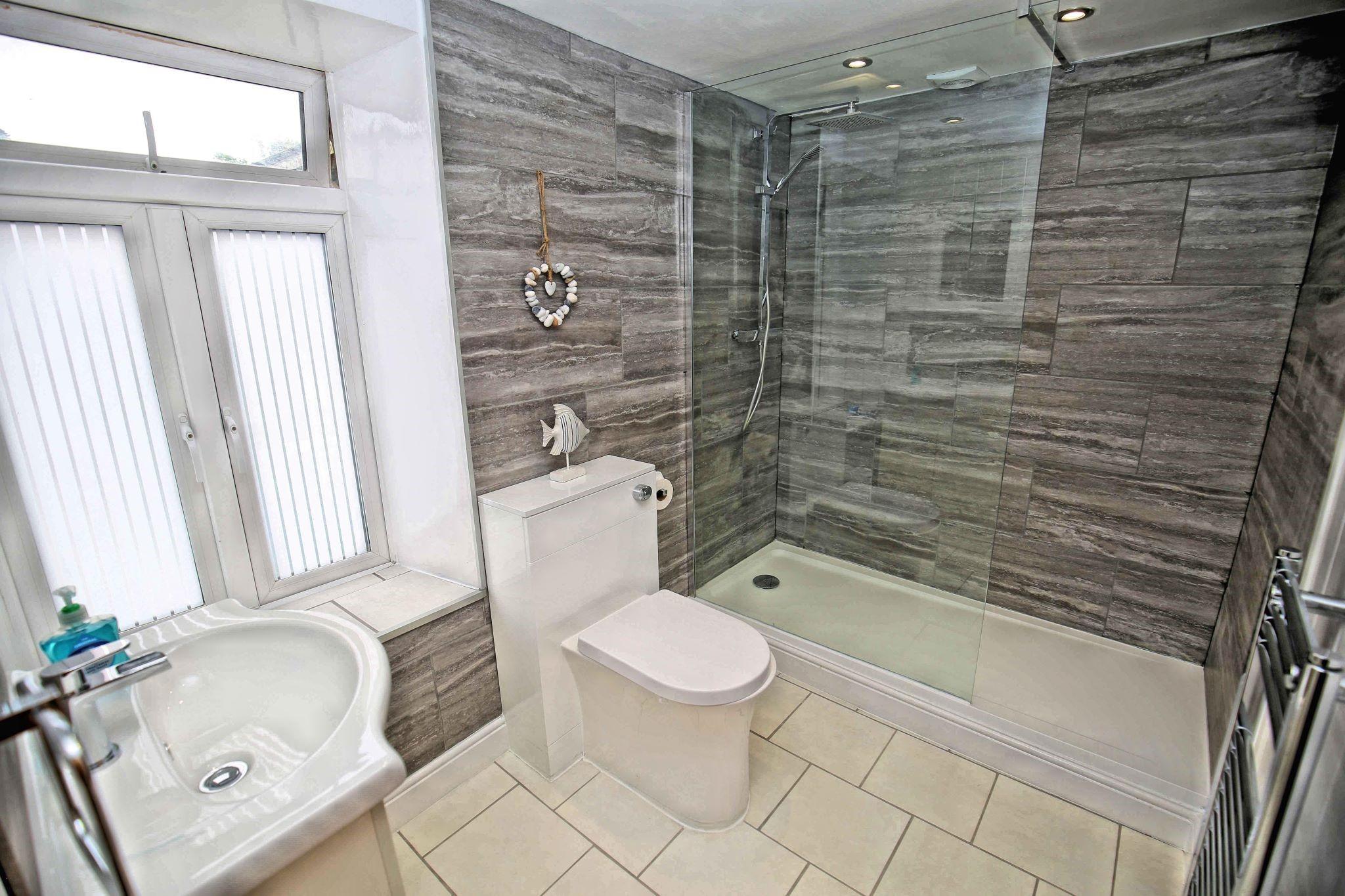 13 steps take you to the front door (note: door width is 20 inches, a standard door is 30 inches), entry is via a porch into the lounge, a further door to the kitchen/diner. Rear door out to steps (18 steps with a minimum width of 19 inches) up to outside seating area. Stairs off lounge to first floor comprising two double bedrooms and one twin bedroom and a shower room with toilet. Stairs up to second floor to a second lounge and second bathroom. Note this floor has a vaulted ceiling so the head heights vary throughout the room. The head height in the main walk way areas is suitable for all.