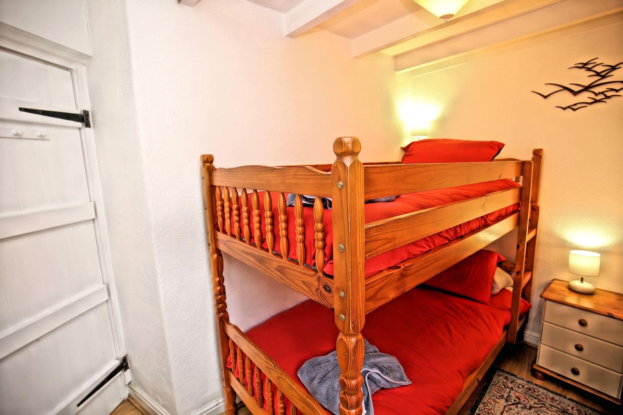 Layout - Ground Floor - Front Door to: Entrance lobby with dining area off -through to hallway with doors off to kitchen, family bathroom and bunk bedded bedroom. Stairs to - First Floor - Lounge with outside patio seating area off, double bedroom. Parking is included in the rental in a private car park about a 7-9 minute walk away (partially up a steep gradient).