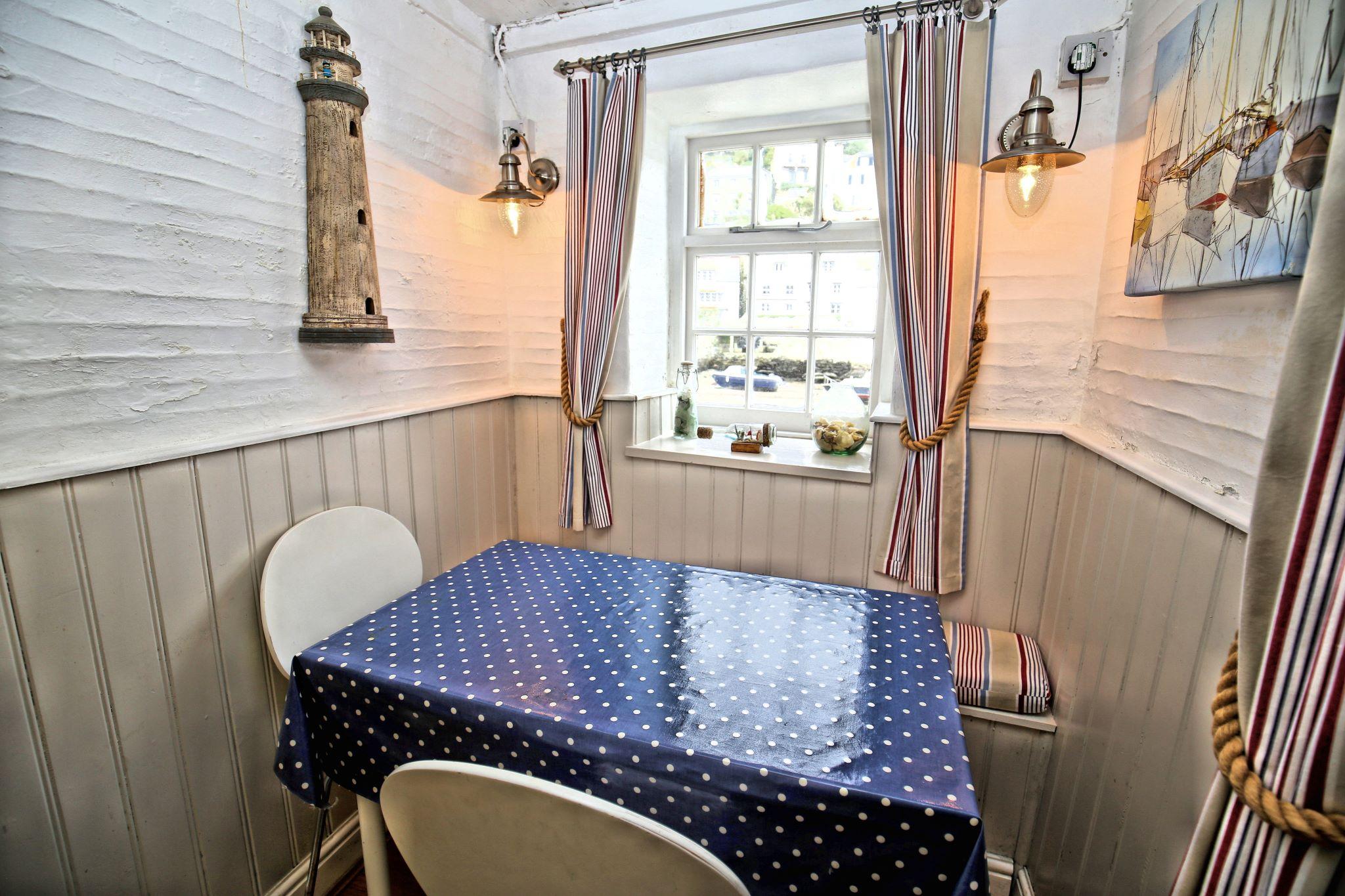 Harbourside is perfectly situated in a prime position next to the harbour of the historic fishing village of Polperro. This beautiful cottage enjoys an enviable location and has the benefits of both an open fire for the winter months and an outside seating area overlooking the harbour for the warmer months. The lounge features comfortable sofas and easy chairs and the room also benefits from a open fire. There is a TV, DVD and Stereo for your entertainment and the windows afford superb harbour views from the window seat. There is a doorway out to the terrace area which overlooks the harbour. Although offering 2 bedrooms, a double and a bunk bedded room, the cottage attracts many couples wishing to enjoy the atmosphere of this picturesque harbour village and the close proximity of all its amenities which can be accessed very easily from the cottage. These include the beach, the coastal walks and a good selection of pubs, restaurants and shops. Pet welcome, Broadband, Electric & utilities, Bed Linen & towels are included. Parking is included in the rental in a private car park about a 7-9 minute walk away (partially up a steep gradient).