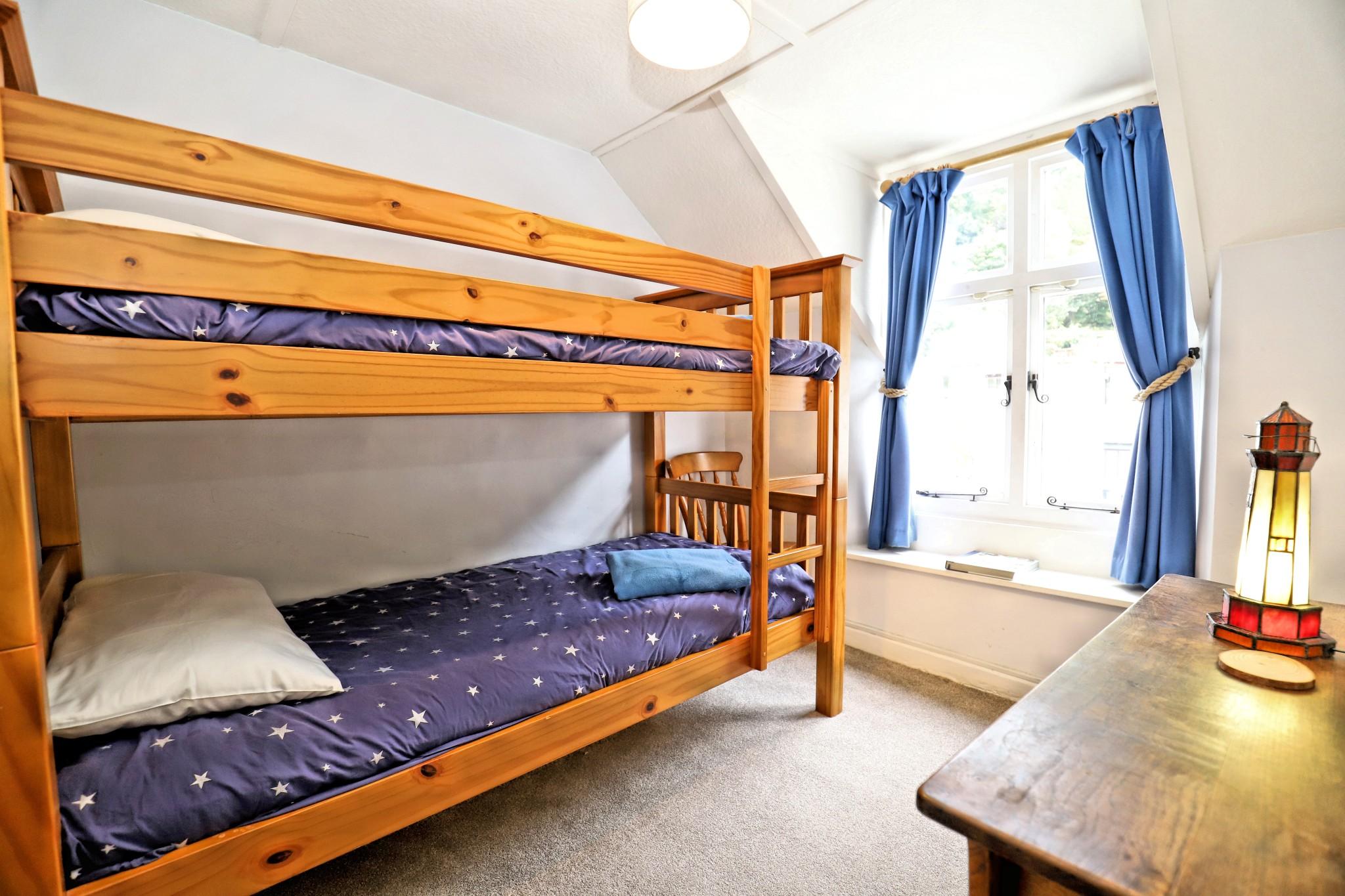 Wesley House joined us for 2025. It is accessed via a few steps and is on the first and second floors of the building. Located next to The Big Green in the centre of the village this character cottage has 3 bedrooms (two king size doubles and a bunk-bedded room) and two shower rooms. There is a large open plan living area with a comfortable lounge at one end with 3 sofas, log burner and SMART TV. There is a dining area for 6 guests and the kitchen is well equipped with electric oven (double) and hob, fridge/freezer, dishwasher, washing machine and microwave. There is also an iron and ironing board and all the utensils you need to self cater. There is no outside space but being located next to The Big Green there is outside seating close by and the harbour is just a 2 minute stroll away. Conveniently situated for all of the amenities Polperro has to offer there are numerous pubs and eateries within a short walk. All utilities are included in the rental price as are towels and A pre-paid parking permit is provided for use in the main public car park (approx 8-10 mins walk). Up to 2 dogs are welcome free of charge.